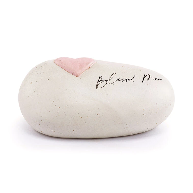 Make a statement on an office desk, nightstand or dresser with this inspired stoneware sculpture from Demdaco. Tabletop decoration features a speckled glaze finish and looks like a weathered rock that’s been dressed up with a “Blessed mom” message in casual black script and an embossed pink heart design. This unique sculpture makes a great Mother’s Day or birthday gift for mom.