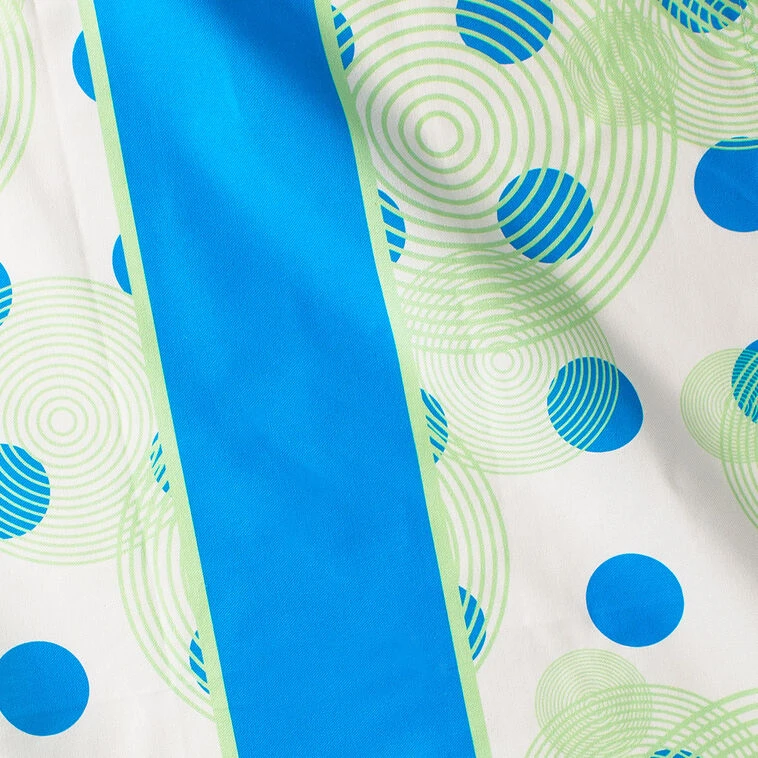 - Drinks on Me dish towel features a modern geometric dots design in green and blue and a funny message.