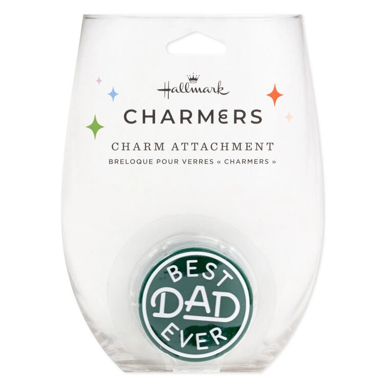 Bowl dad over with a glass that’s simply brimming with love and appreciation. Fun “Best Dad Ever” silicone charm glassware decoration is sized to fit inside a Charmers drinking glass or stemless contour glass—both feature a post in the bottom of the glass to hold the charm front and center. And with a unique charm displayed, he can instantly find his drink among all the other glasses on the table. This round, dark green charm makes a great gift for dad when paired with a coordinating glass (not included).
