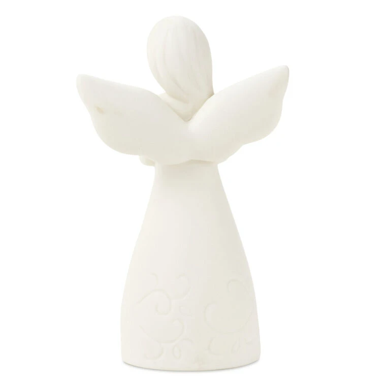 Remind your daughter how much she is loved and treasured with this miniature porcelain angel figurine by Joanne Wright. Mini angel statue features a heartwarming message that tells her what a gift she is to you. This elegant Joanne’s Angels statue holds three flowers close to her heart. Gold accents along her wings, in the center of the flowers and on the lettering of her skirt add sweet shine. With etched vine designs around the message, this mini angel makes a lovely gift for your precious daughter.
