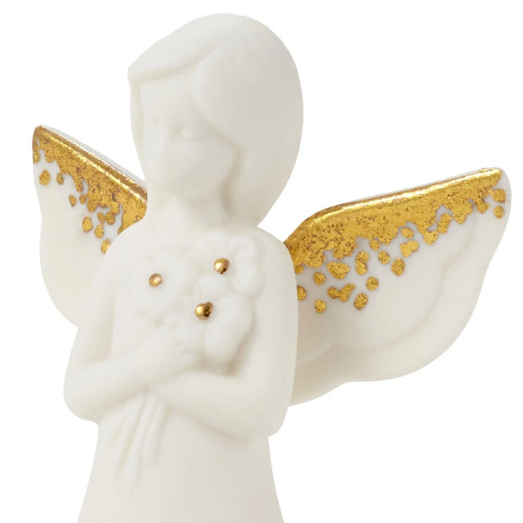 - Joanne’s Angels mini figurine features an angel holding three flowers with gold metallic accents, etched details and an uplifting message for a daughter.