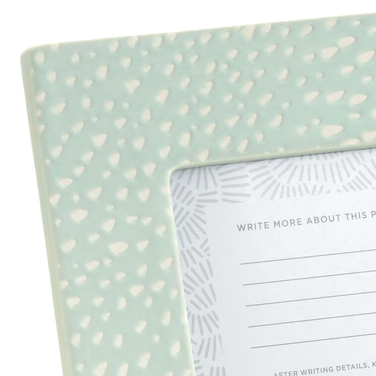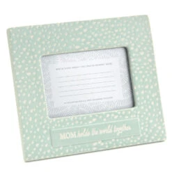 Give mom a fun way to show off her skills at holding things together with this aqua blue picture frame for her favorite family photo. This pastel blue-green photo holder features a white flecked design and a raised caption area below the 4×6 horizontal photo opening. Inscribed with a heartfelt message in white lettering, this mom picture frame makes a memorable gift for Mother’s Day, her birthday or just because.