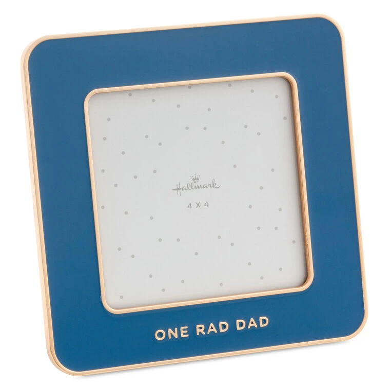 Celebrate the cool guy you call dad with a favorite photo of him and all his family in this modern, enameled metal picture frame. Square blue frame features rounded edges, gold trim and a raised gold caption below the 4×4 opening. Give him a treasured snapshot he will love to display with this thoughtful gift on Father’s Day, his birthday or just because.