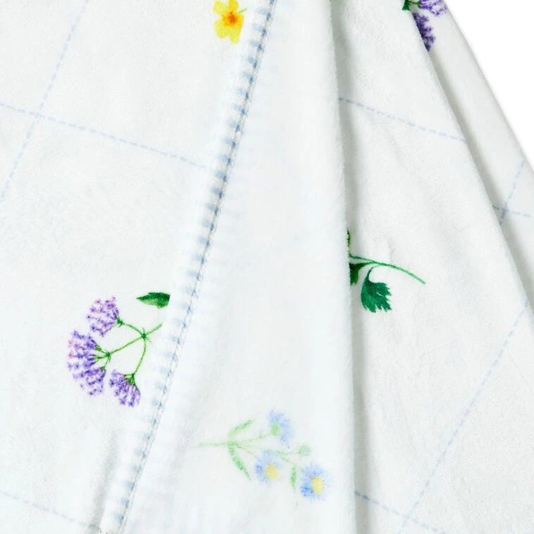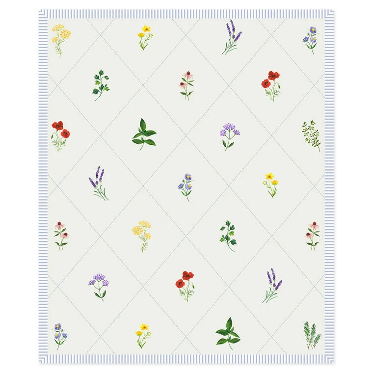 Blanket yourself in blooms each time you snuggle up in this pretty fleece throw blanket. Dressed for spring in a riot of colorful wildflower and botanical designs—with purple coneflowers, lavender, poppies and more—the cozy plush blanket features a striped seersucker border and a diamond grid pattern in light blue for a fresh and breezy feel. Made from snuggly soft fabric, the blanket makes a lovely Mother’s Day, Easter or springtime housewarming gift.
