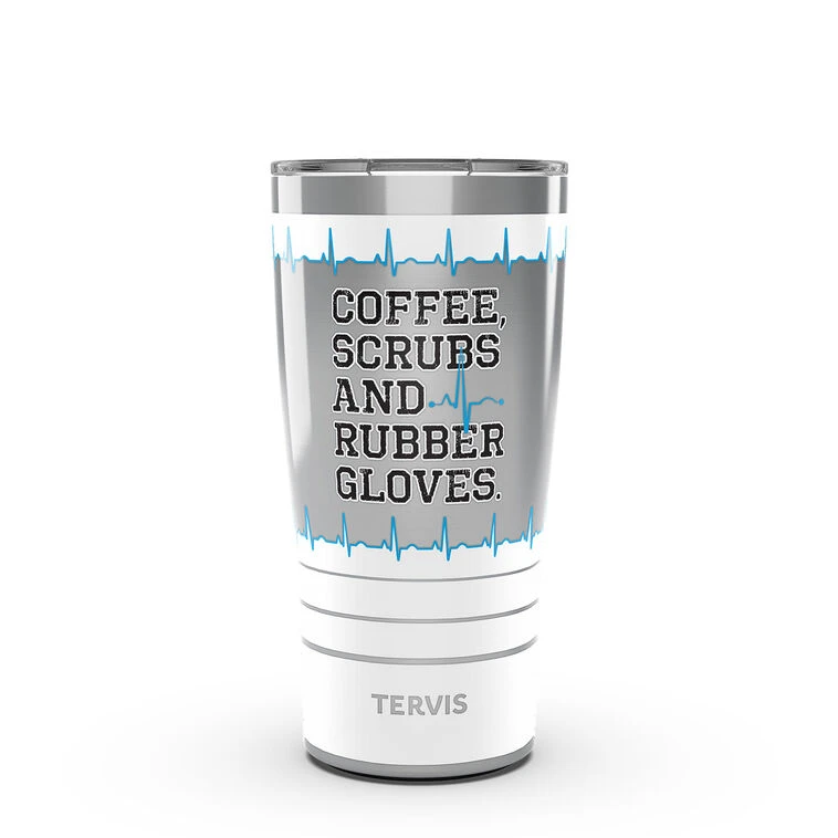 - Tervis stainless steel insulated tumbler features a fun, rhyming message for a nurse or doctor paired with blue heartbeat design.